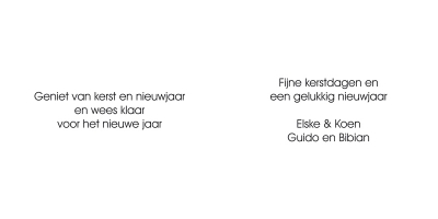 Welke tekst wil je gebruiken? Vul hieronder de gewenste teksten in Titel (max. 2 regels) Tekst pagina links (max. 14 regels) Tekst pagina rechts (max. 14 regels) Bekijk voorbeeld Bestel monster van dit kaartje Standaardvoorbeeld buitenzijde Standaardvoorbeeld binnenzijde