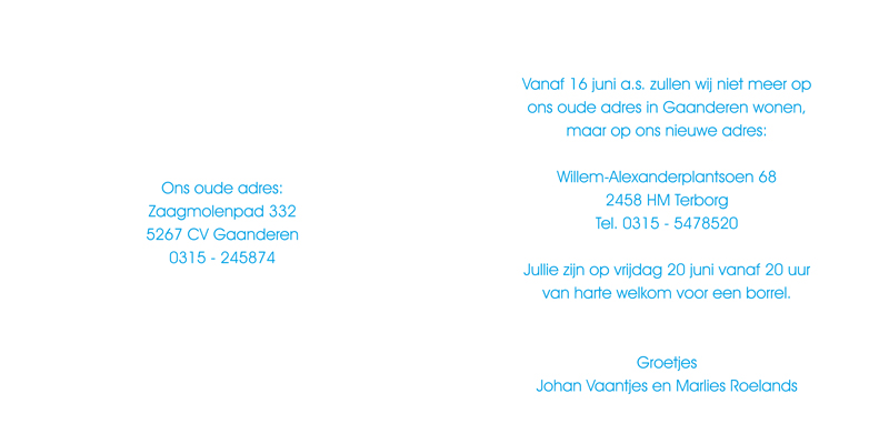 Welke tekst wil je gebruiken? Vul hieronder de gewenste teksten in Tekst voorkant (optioneel) Tekst op label (max. 2 regels) Tekst pagina links (max. 14 regels) Tekst pagina rechts (max. 14 regels) Bekijk voorbeeld Bestel monster van dit kaartje Standaardvoorbeeld buitenzijde Standaardvoorbeeld binnenzijde