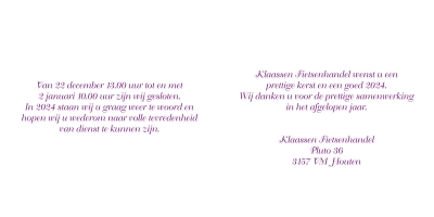 Welke tekst wil je gebruiken? Vul hieronder de gewenste teksten in Tekst voorkant (max. 30 karakters) Tekst pagina links (max. 14 regels) Tekst pagina rechts (max. 14 regels) Bekijk voorbeeld Bestel monster van dit kaartje Standaardvoorbeeld buitenzijde Standaardvoorbeeld binnenzijde