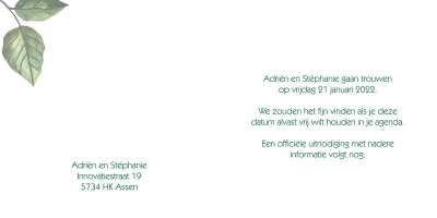 Welke tekst wil je gebruiken? Vul hieronder de gewenste teksten in Namen voorkant (max. 40 karakters) Tekst pagina links (max. 10 regels) Tekst pagina rechts (max. 14 regels) Bekijk voorbeeld Bestel monster van dit kaartje Standaardvoorbeeld buitenzijde Standaardvoorbeeld binnenzijde