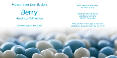Welke tekst wil je gebruiken? Vul hieronder de gewenste teksten in Tekst voor de naam (optioneel) Naam (max. 25 karakters) Doopnaam (optioneel) Geboortedatum (optioneel) Tekst pagina rechts (max. 9 regels) Bekijk voorbeeld Bestel monster van dit kaartje Standaardvoorbeeld buitenzijde Standaardvoorbeeld binnenzijde