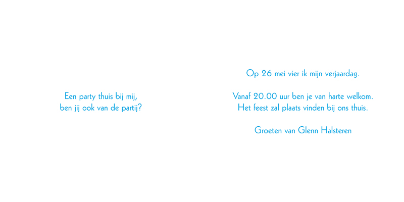 Welke tekst wil je gebruiken? Vul hieronder de gewenste teksten in Tekst voorkant (max. 40 karakters) Tekst pagina links (max. 14 regels) Tekst pagina rechts (max. 14 regels) Bekijk voorbeeld Bestel monster van dit kaartje Standaardvoorbeeld buitenzijde Standaardvoorbeeld binnenzijde