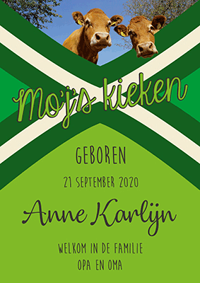 Een leuk kaartje per post verzenden om iemand te feliciteren met de geboorte van zijn of haar baby. De set bestaat uit 8 verschillende ansichtkaarten uit de categorie Achterhoekse Vlag Geboorte. Formaat van de ansichtkaarten is A6 (148 x 105 mm).